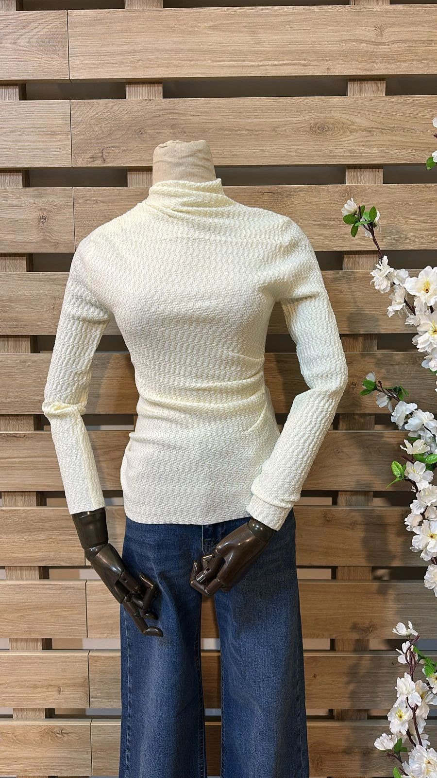 Side Ruched Ecru Top