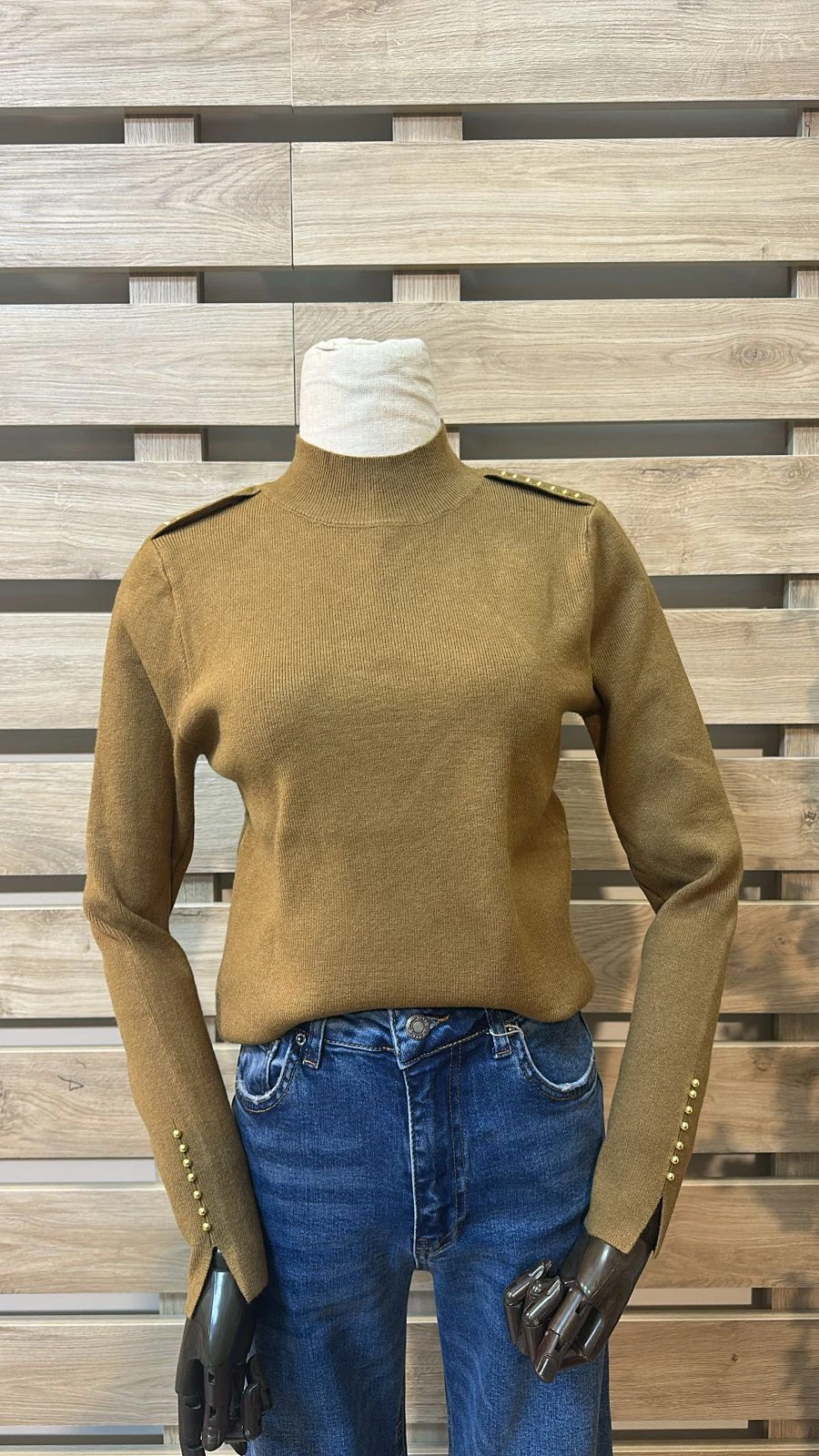 Gold Shoulder Buttoned Camel Top
