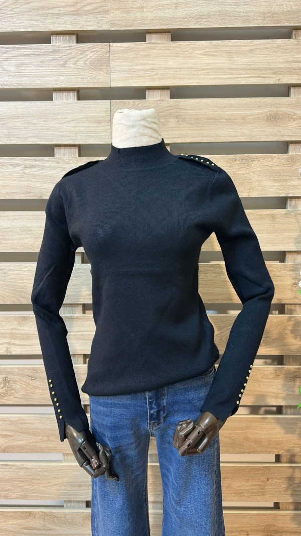 Gold Shoulder Buttoned Black Top