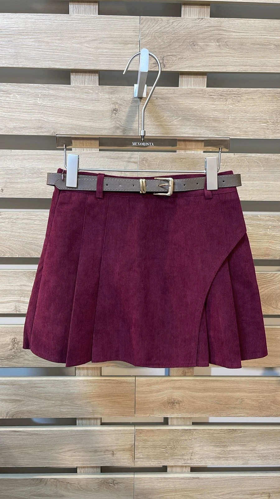 Side Pleated Belted Bordeaux Skirt