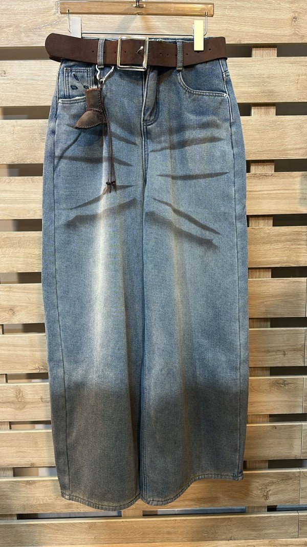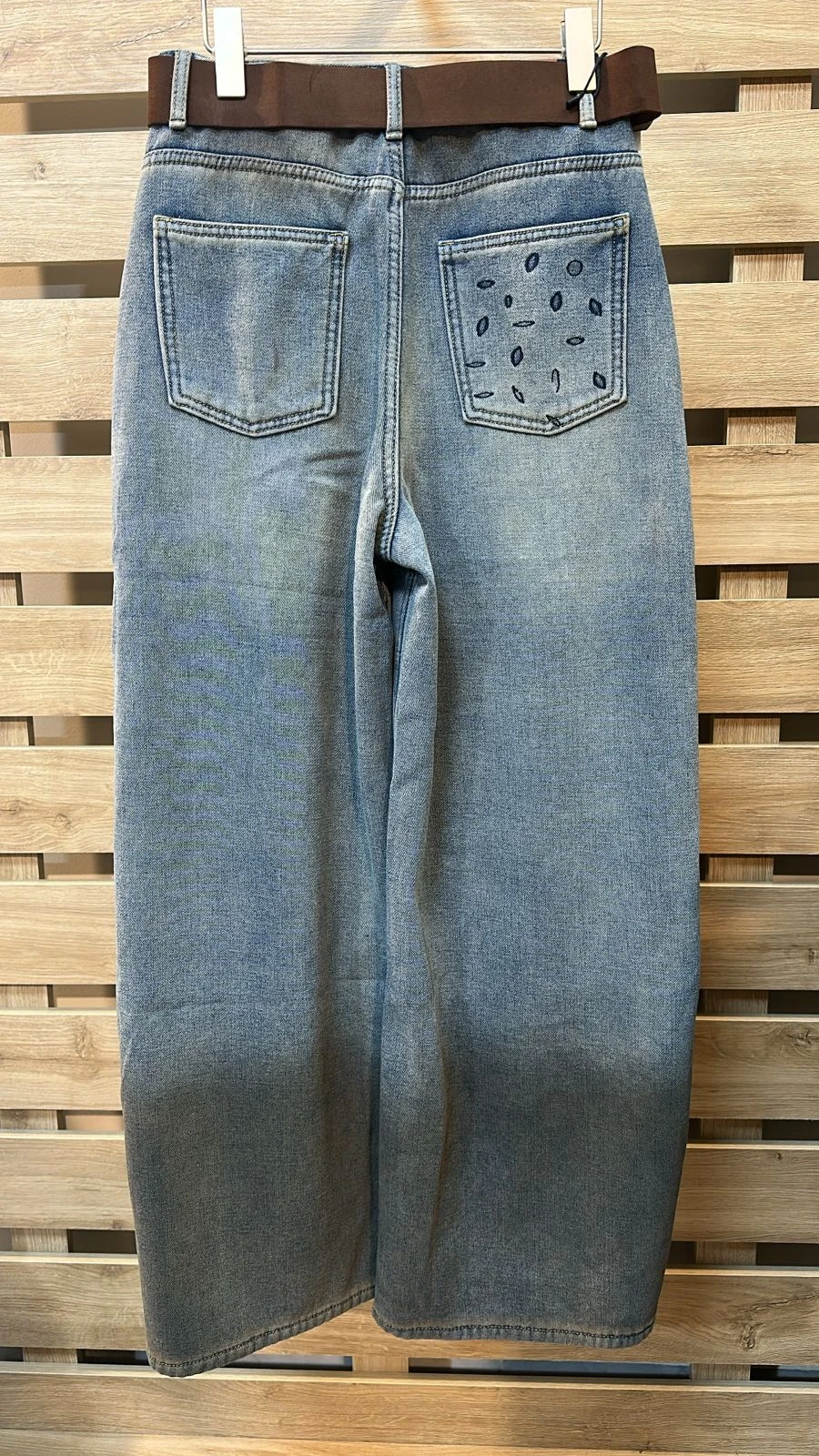 Brown Belted With Brown Edges Fleece Blue Jeans