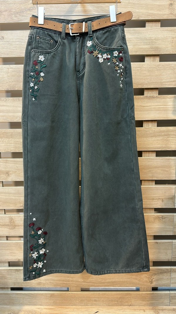 Embroidered Detailed Fleece Olive Jeans