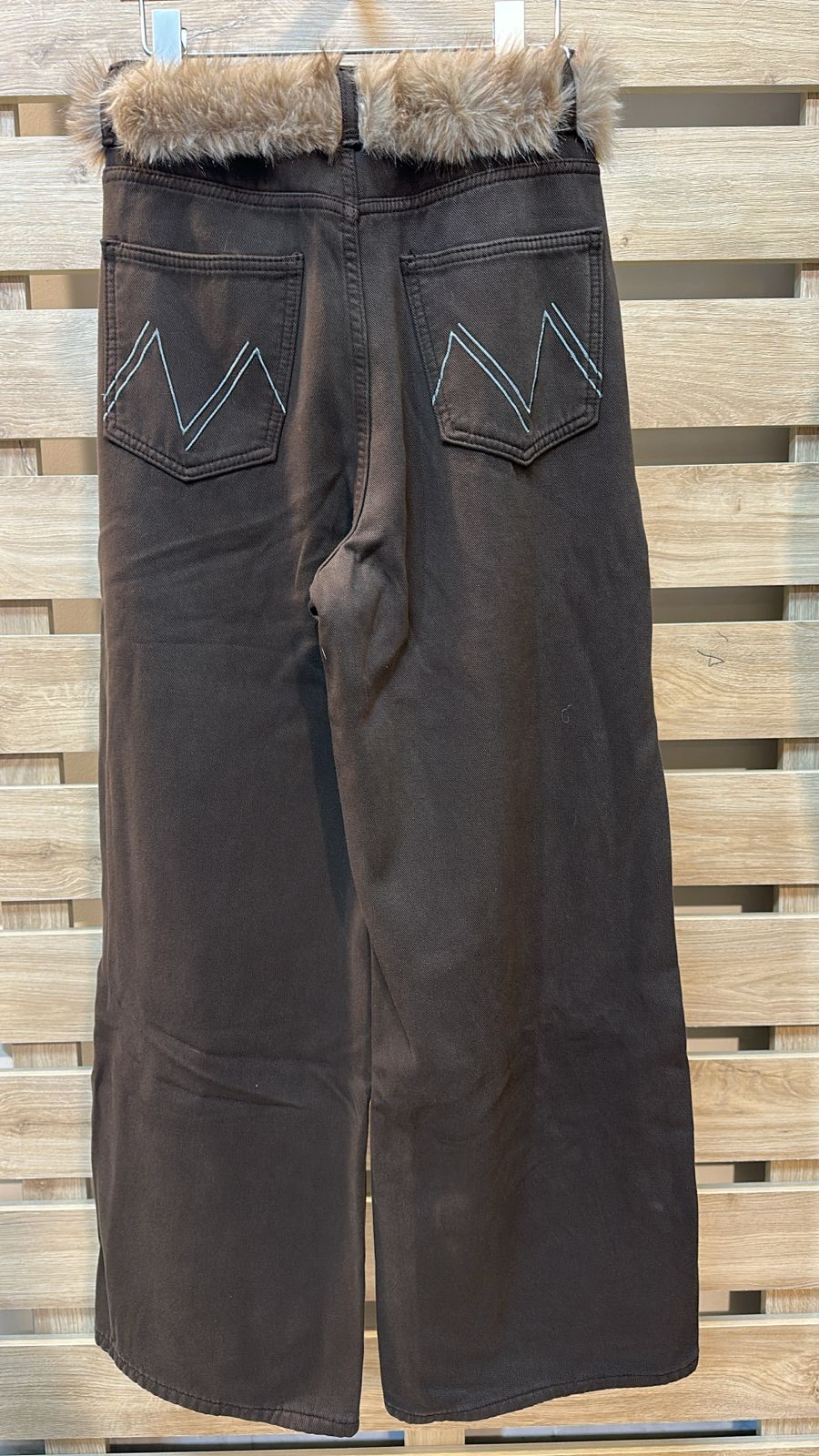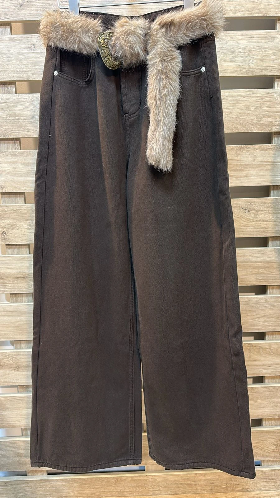 Ecru Fur Belted Brown Jeans