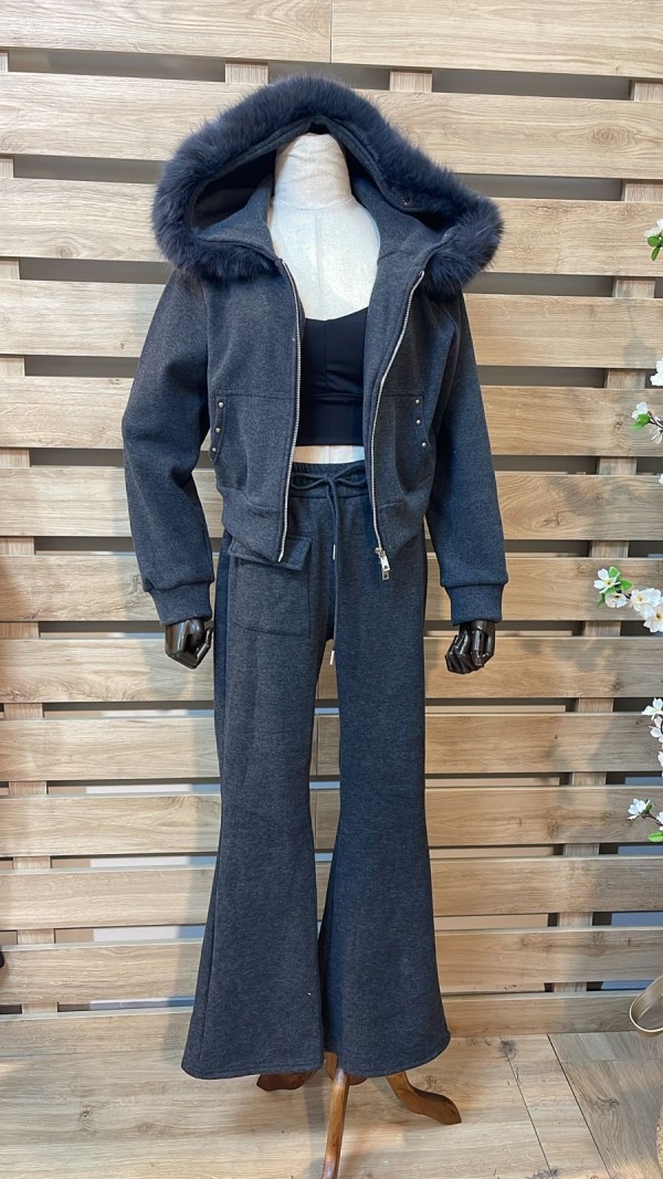 Stones Pocket Detailed Fleece Grey Tracksuit