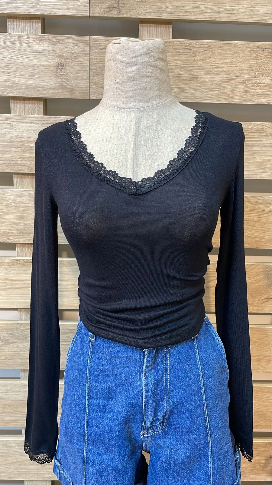 Lace Neck Black Top