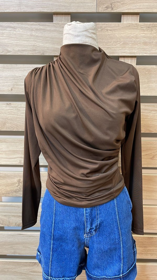 Side Ruched Brown Top