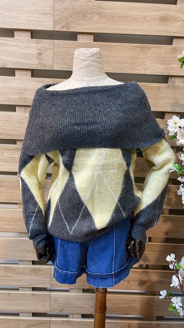 Off-shoulder Rhombus Yellow & Anthracite Knitwear