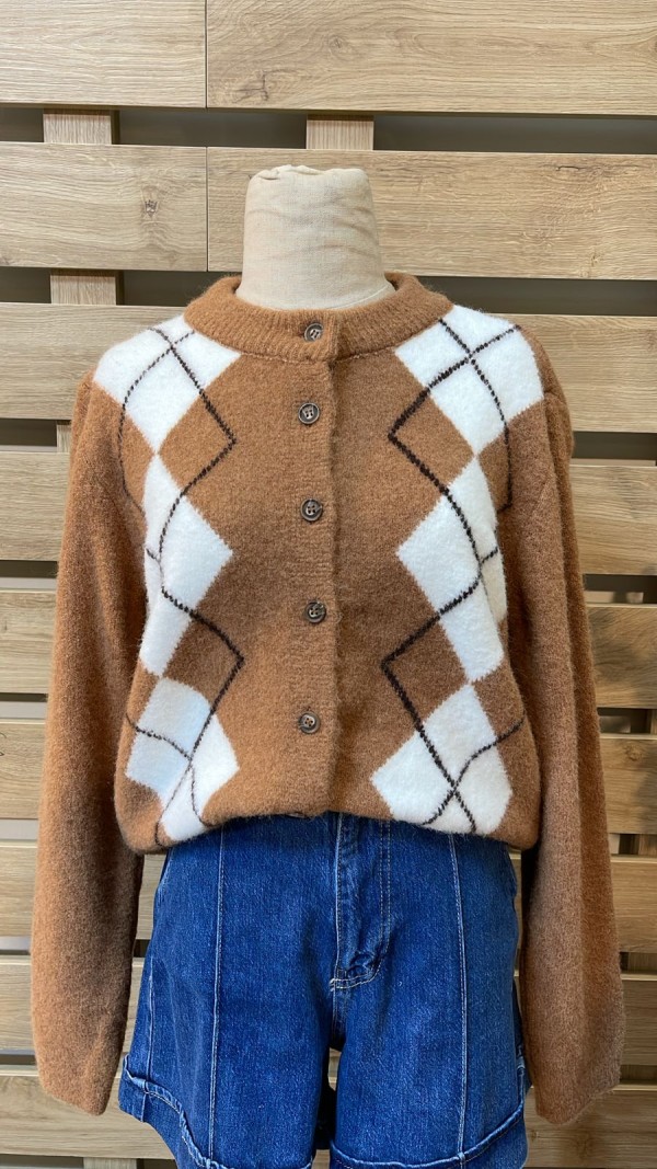 Rhombus White & Camel Cardigan