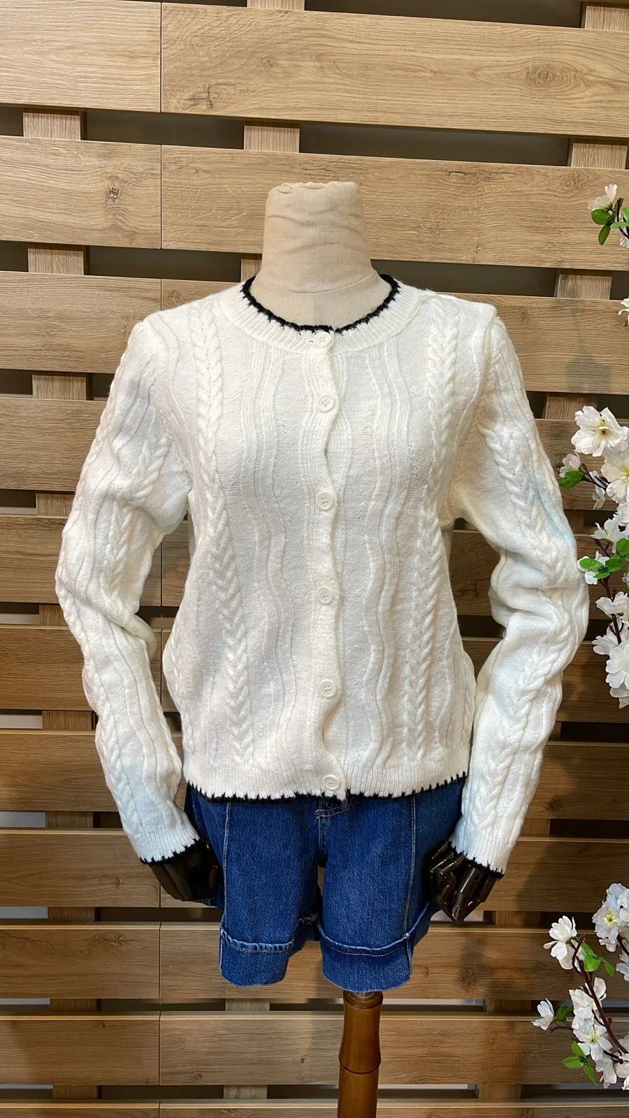 Black Edges Ecru Cardigan
