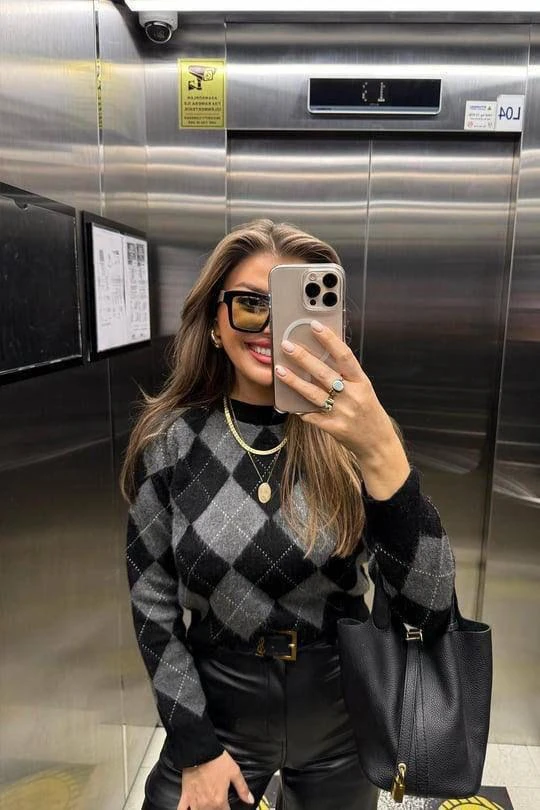 Grey Rhombus Black Knitwear