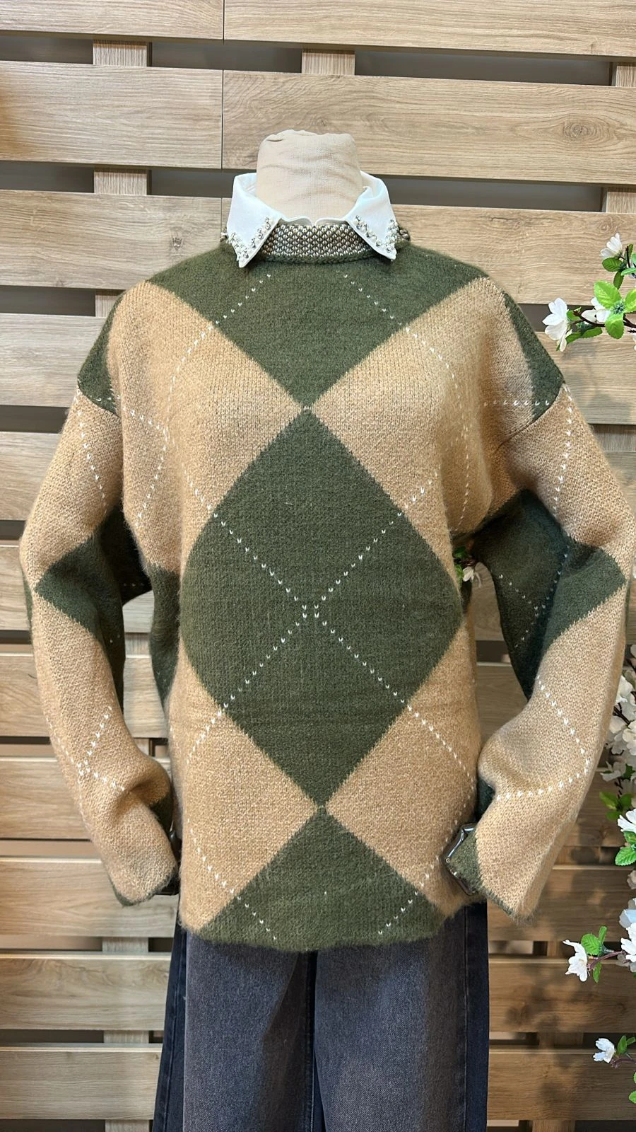 Wide Beige Rhombus Mint Knitwear