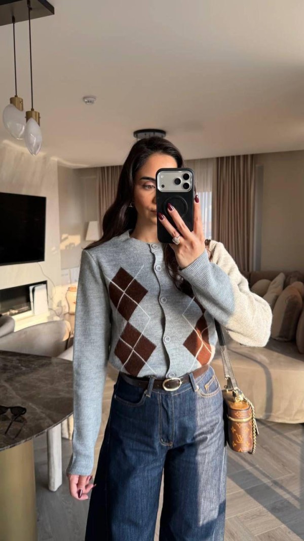 Brown Rhombus Grey Cardigan