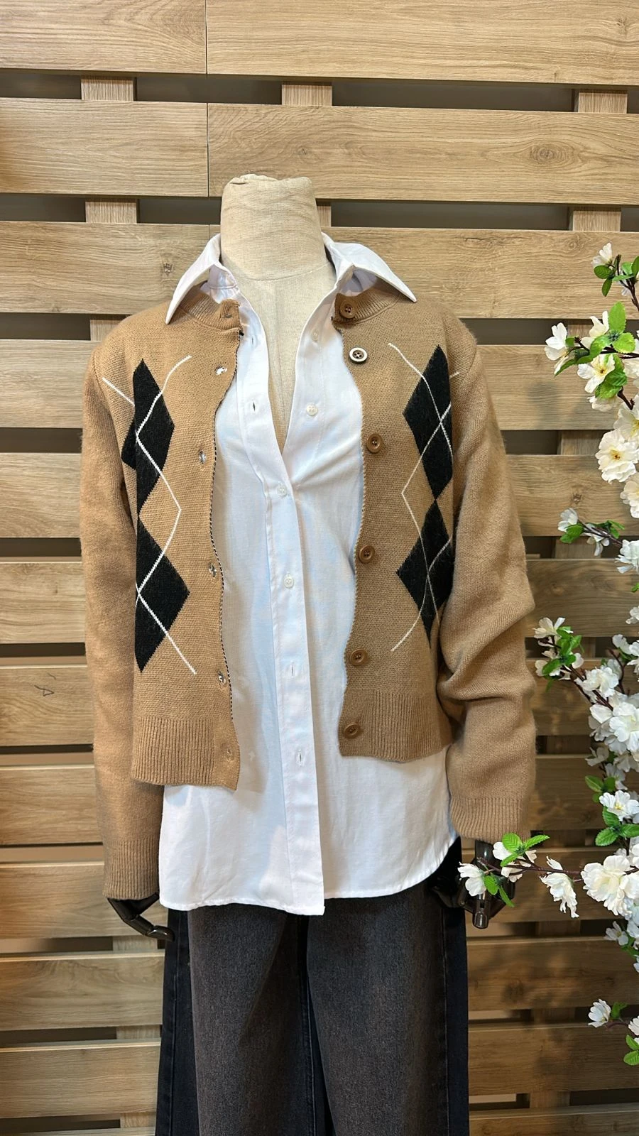 Black Rhombus Beige Cardigan
