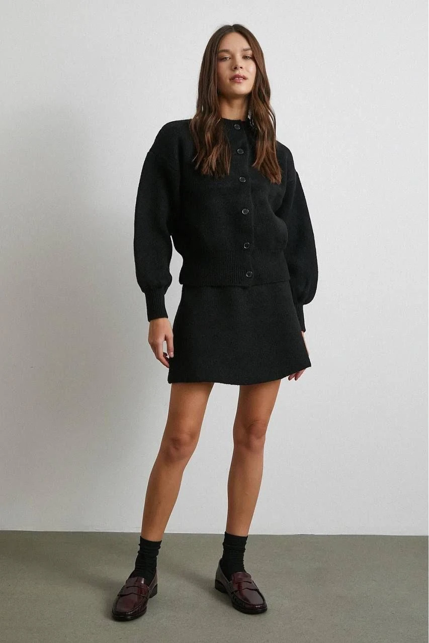 Buttoned Cardigan & Skirt Black Set