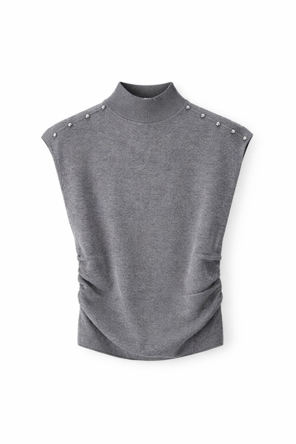 Shoulder Studded Grey Top