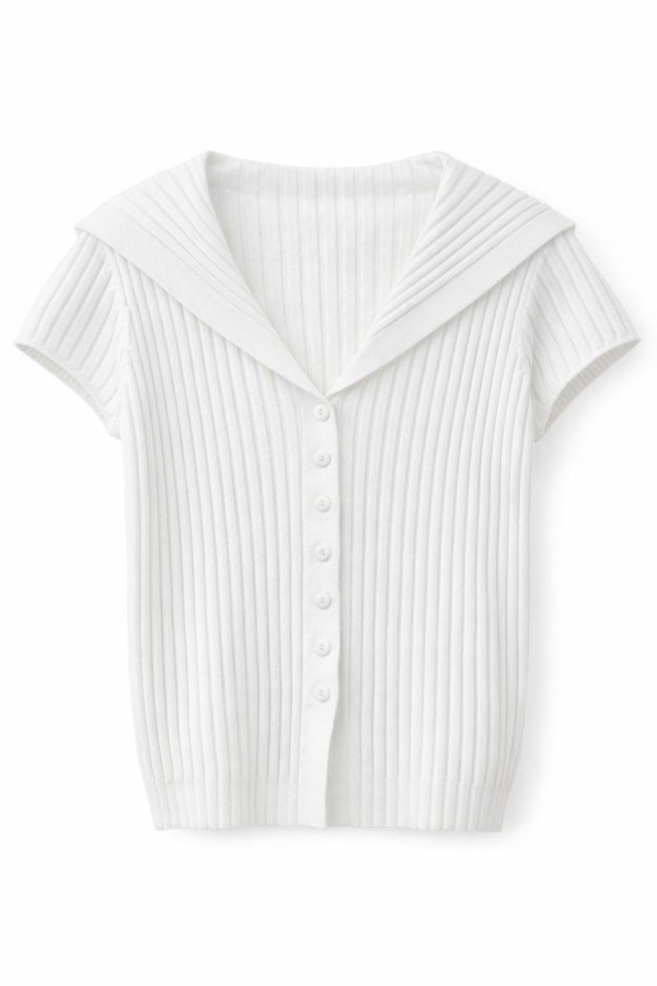 Ribbed Buttoned White Vest