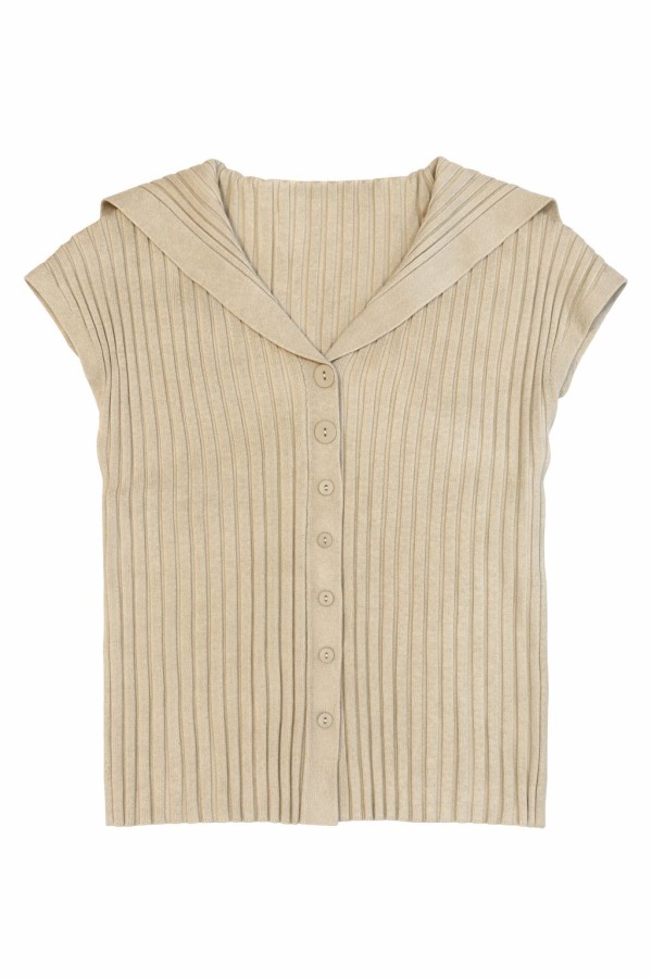 Ribbed Buttoned Off-White Vest