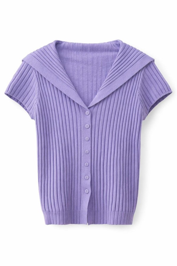 Ribbed Buttoned Lilac Vest