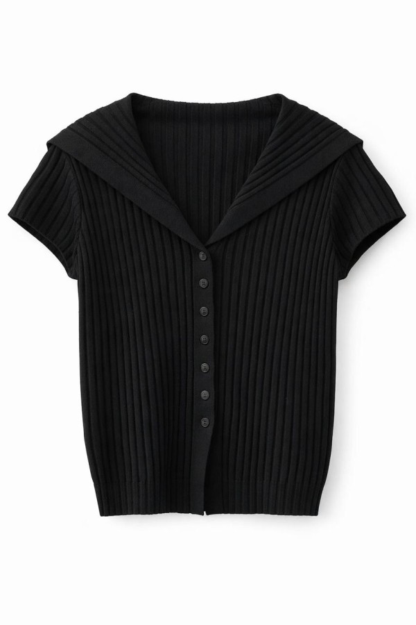 Ribbed Buttoned Black Vest