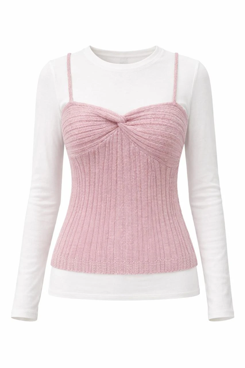 Layered Knit Cami Pink Top