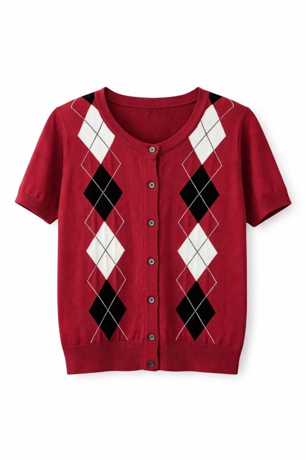Diamond Pattern Bordeaux Cardigan