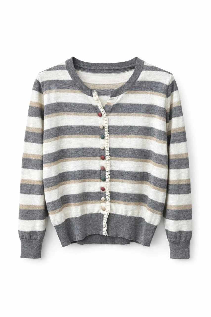 Camel & White Striped Grey Cardigan