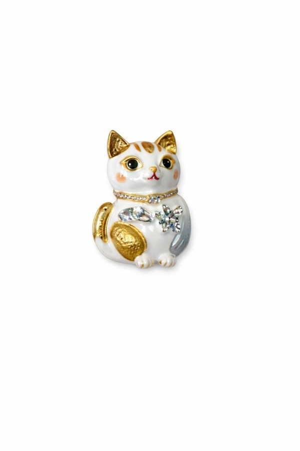 White & Gold Cat Brooch