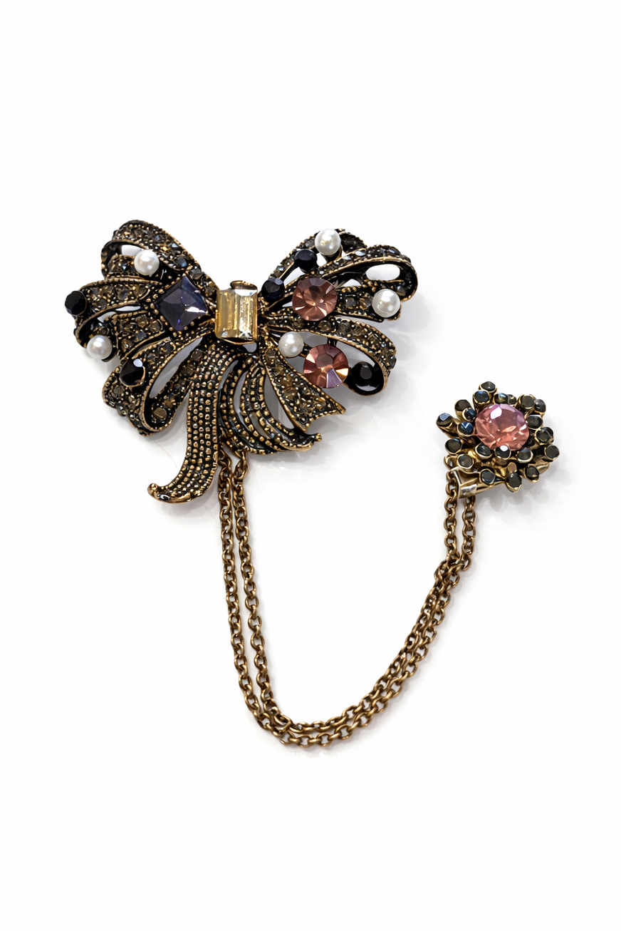 Vintage Crystal Bow Brooch