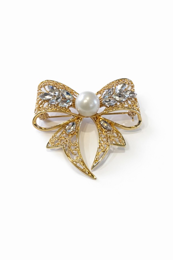 Gold Bow With Pearl Brooch