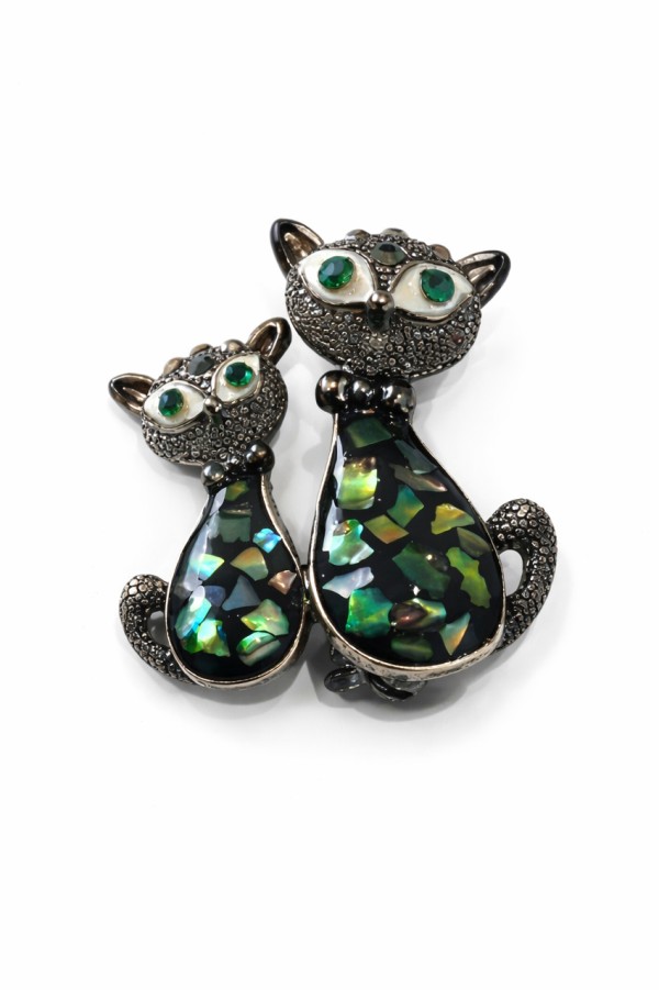 Double Green Cat Brooch