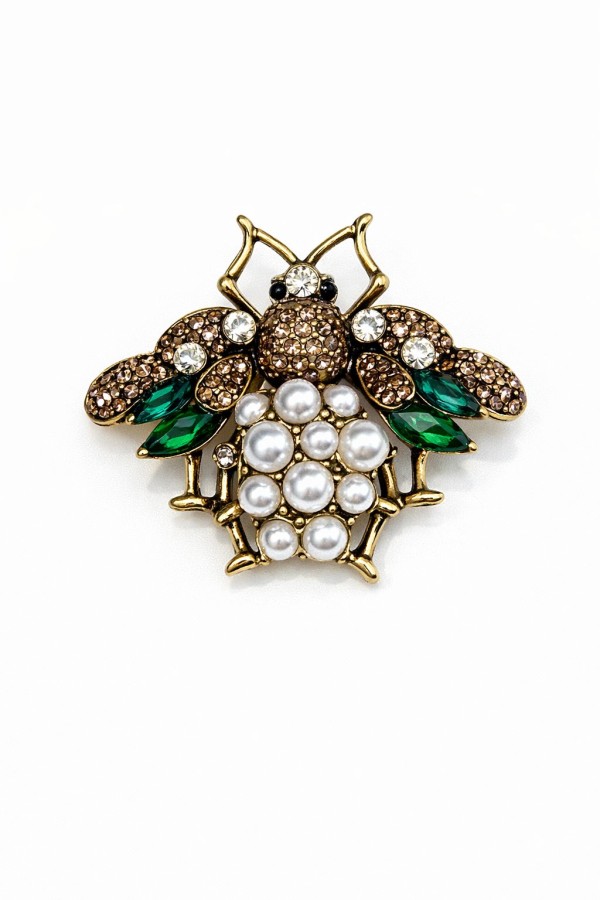 Pearl & Green Bee Brooch
