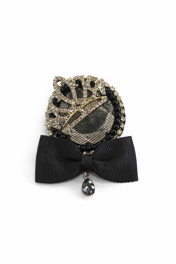 Crown Decorated Black Brooch