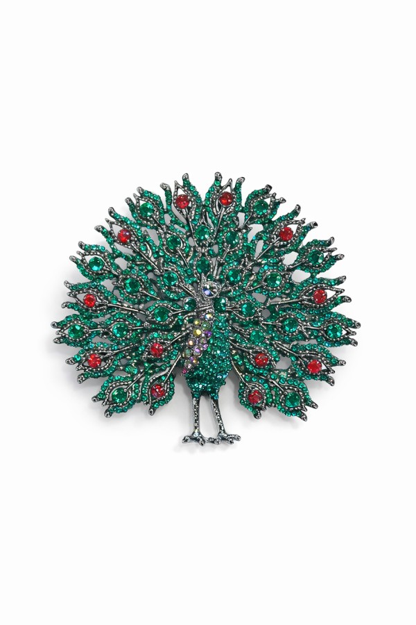 Huge Red & Green Peacock Brooch