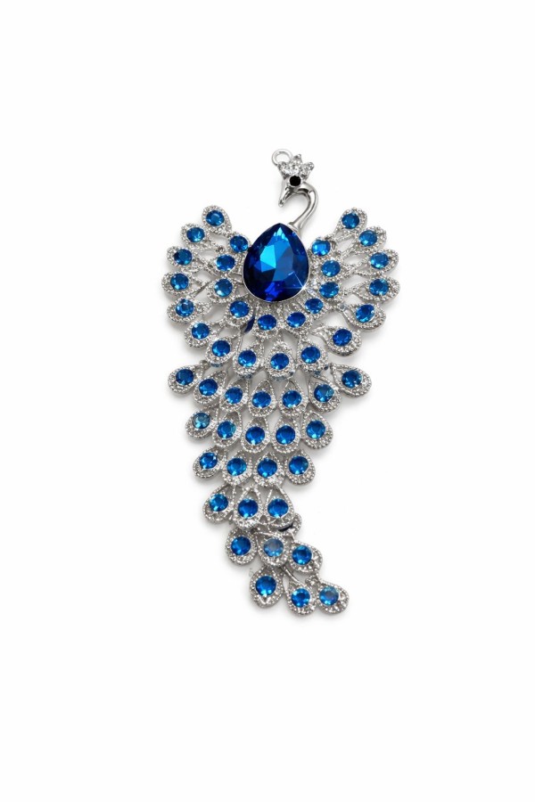 Huge Blue Peacock Brooch