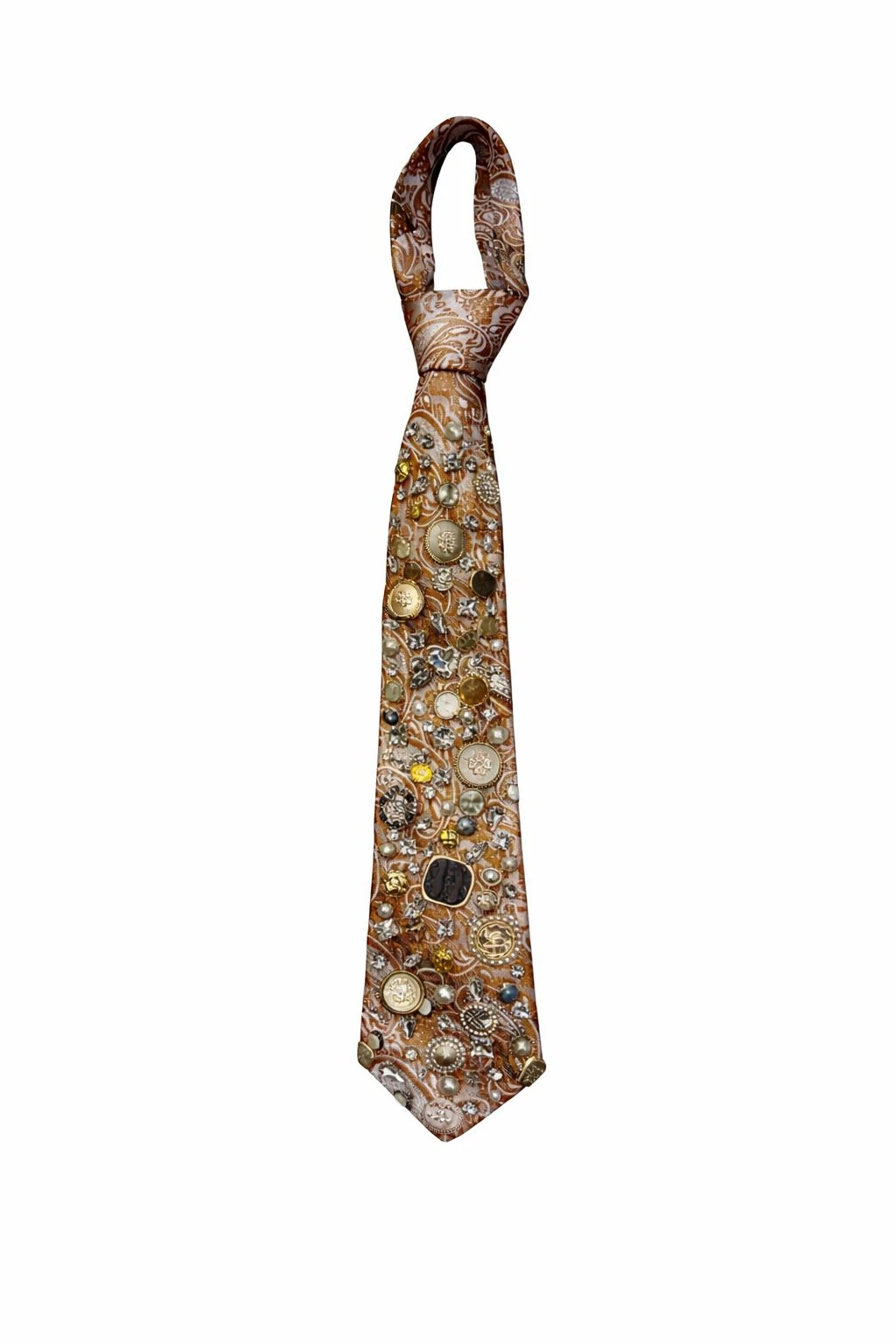 Multi Brooches Detailed Beige Cravat