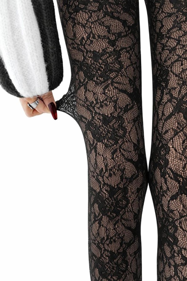 Floral Lace Black Tights