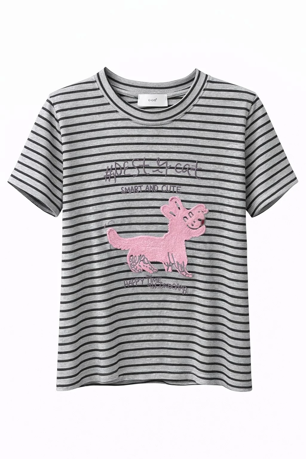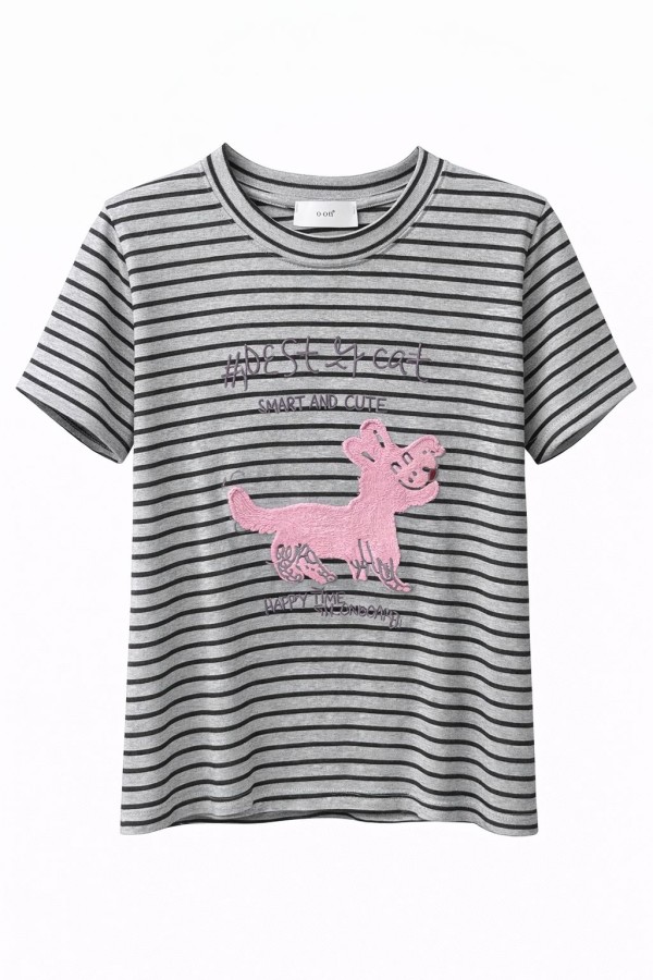 Pink Monster Cat Grey Striped T-shirt