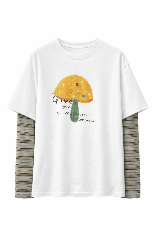 Mushroom Detailed White T-shirt