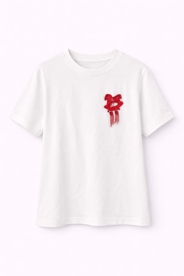 Red Detailed White T-shirt