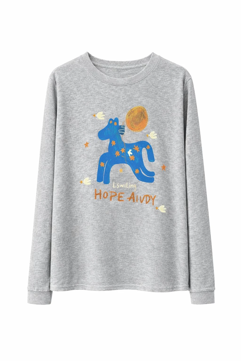 Blue Horse Detailed Grey Sweatshirt