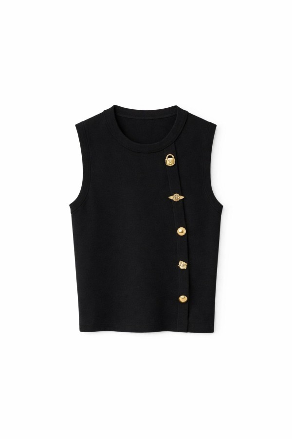 Gold Buttoned Black Top