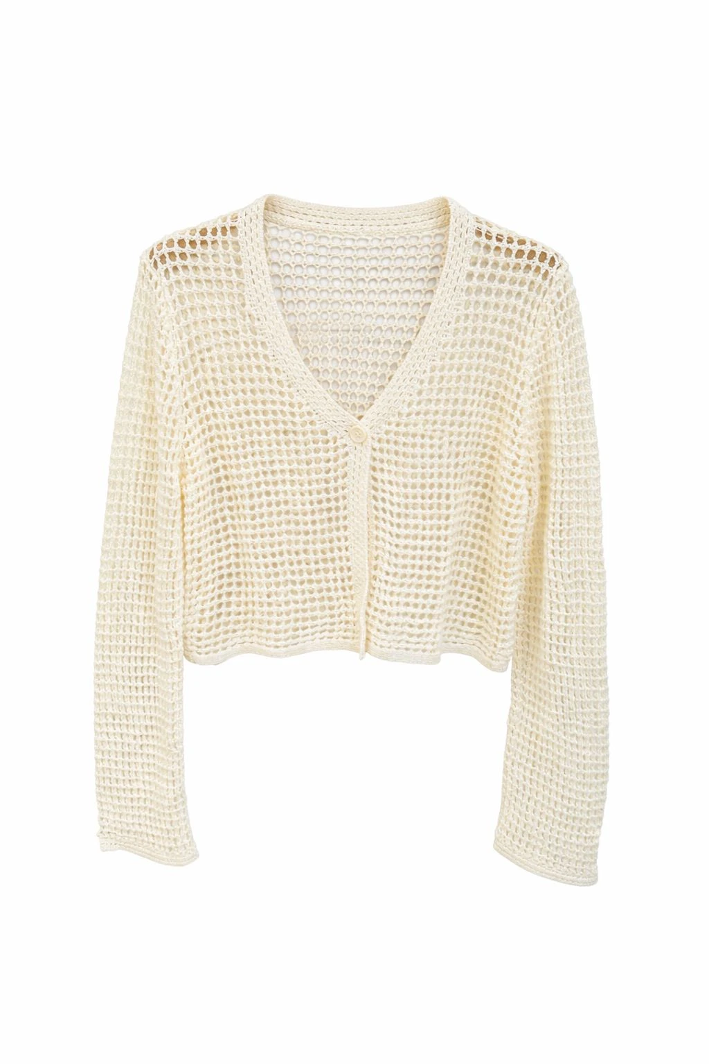 One Button Crochet Ecru Cardigan