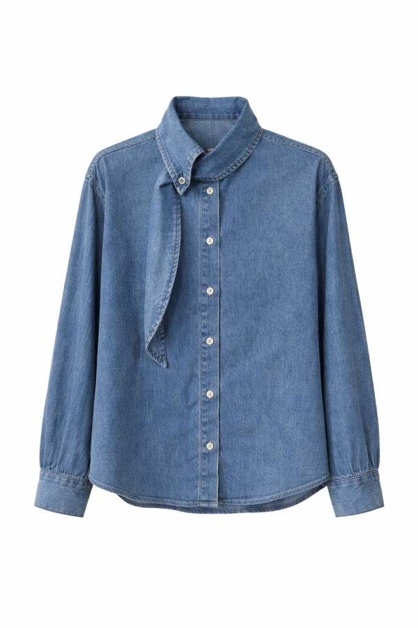 Scarf Style Neck Denim Shirt