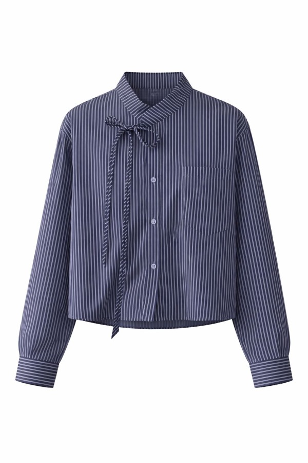 Fringes Tie Striped Navy Shirt