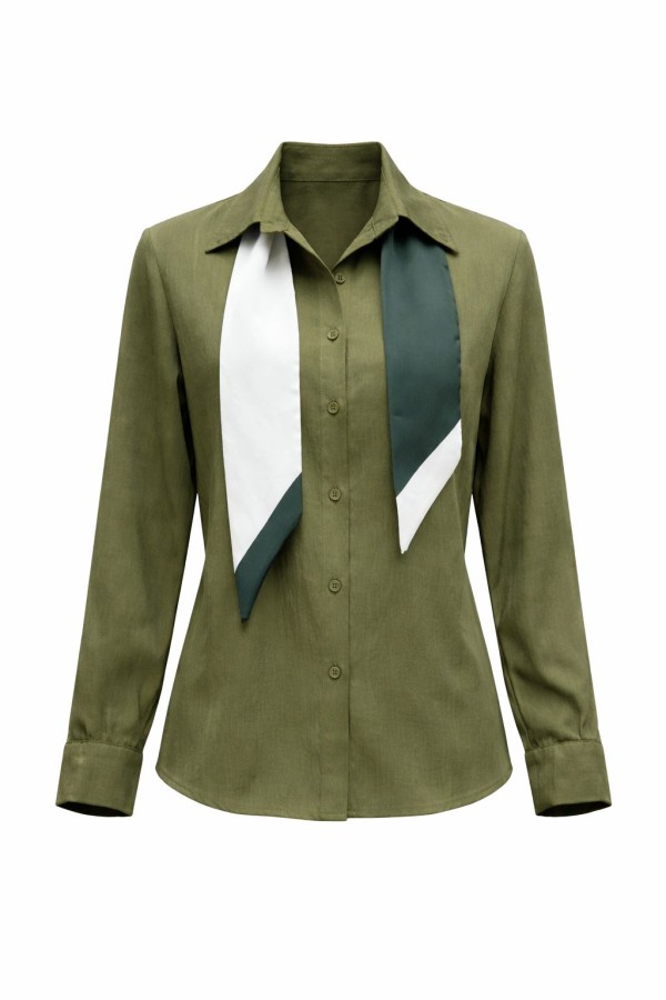Scarf Style Neck Olive Shirt