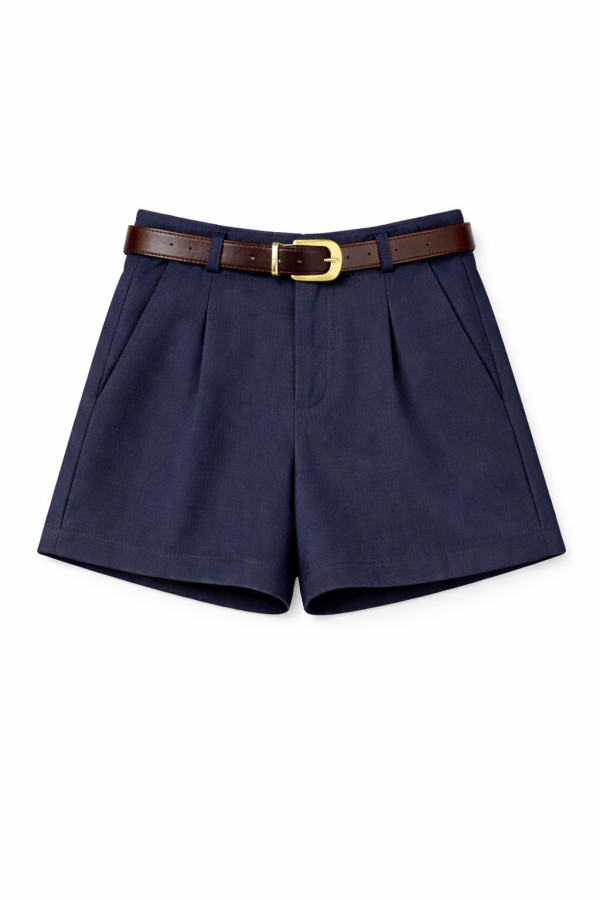 Belted Basic Navy Shorts