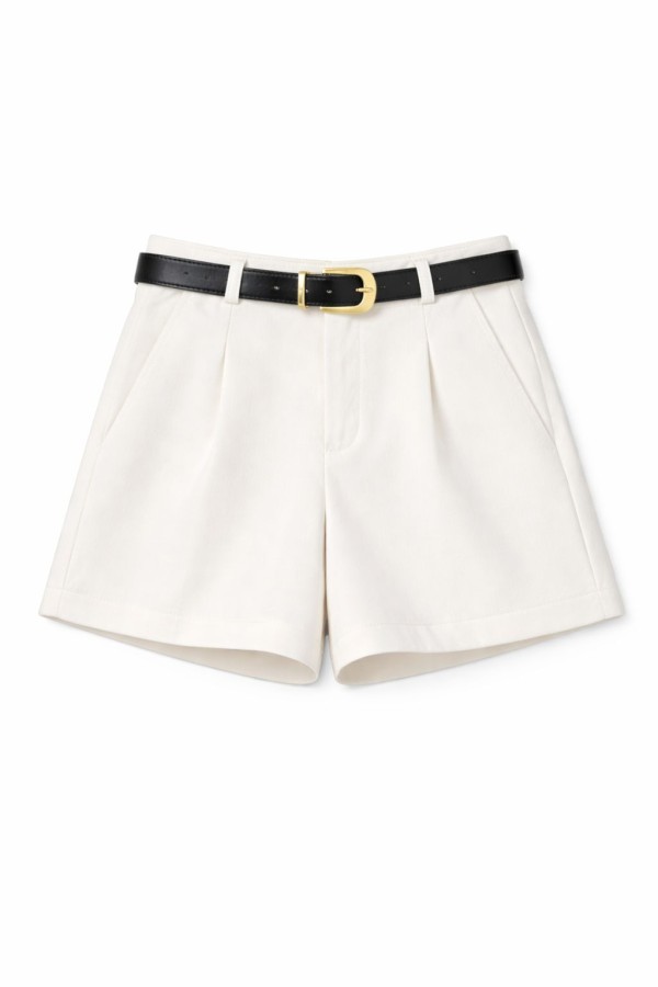 Belted Basic White Shorts