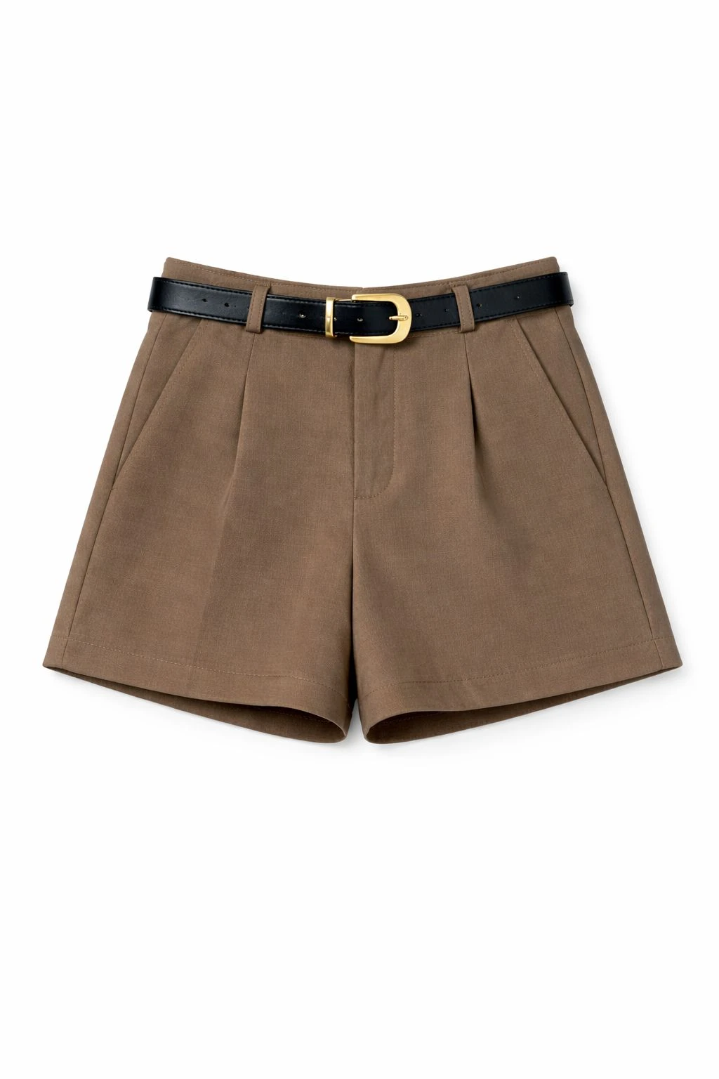 Belted Basic Brown Shorts