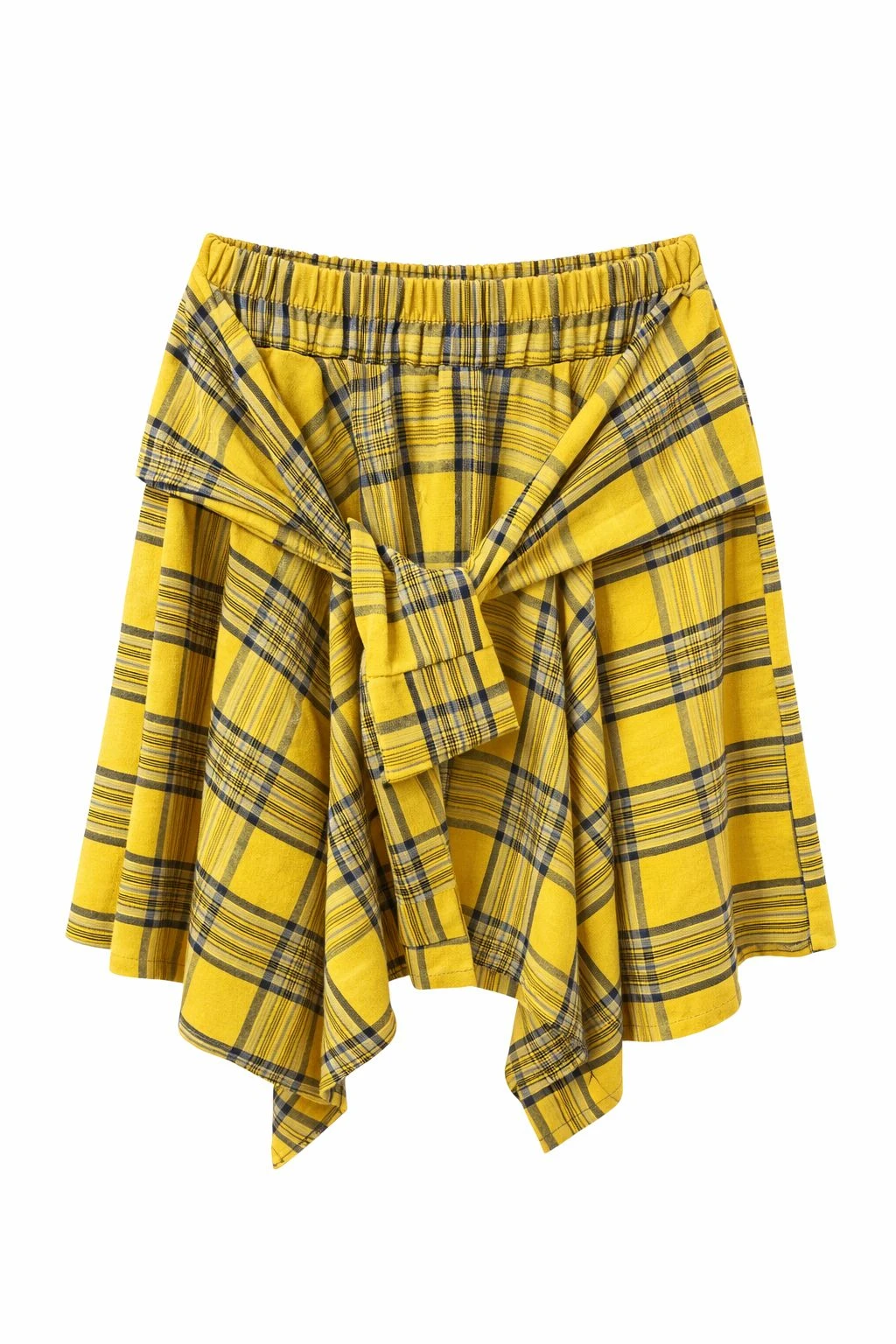Asymmetric Check Detailed Mustard Skirt