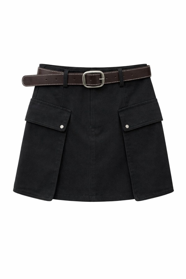 Big Side Pockets Black Skirt